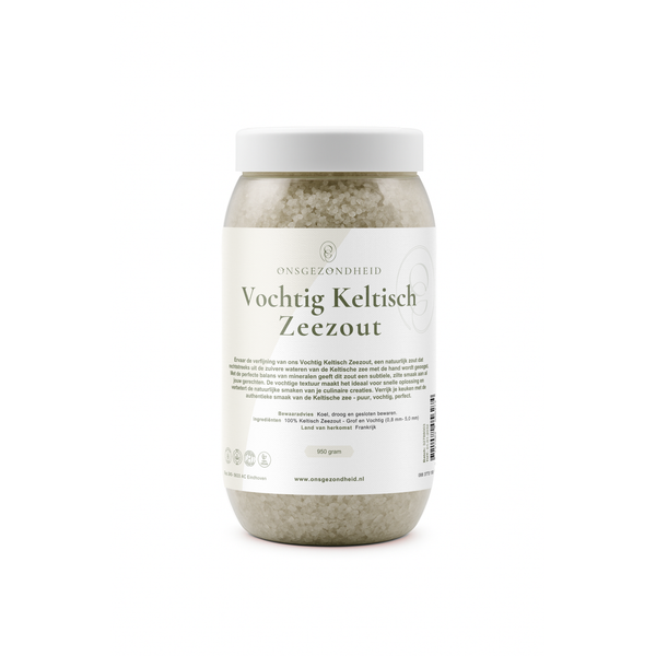 Ontdek de rijke smaken en ongeëvenaarde zuiverheid van ons Keltisch Zeezout, een premium zout dat met de hand wordt geoogst uit de ongerepte wateren van de Keltische Zee. Met zijn subtiele smaak en unieke mineraalsamenstelling is dit zeezout de perfecte aanvulling voor elke maaltijd, het versterken van smaken terwijl het uw gerechten voorziet van essentiële voedingsstoffen.